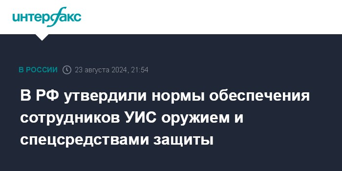 Москва. 23 августа. INTERFAX.RU - Правительство РФ утвердило нормы обеспечения сотрудников уголовно-исполнительной системы оружием, боеприпасами к нему и специальными средствами индивидуальной защиты для постоянного ношения и хранения.