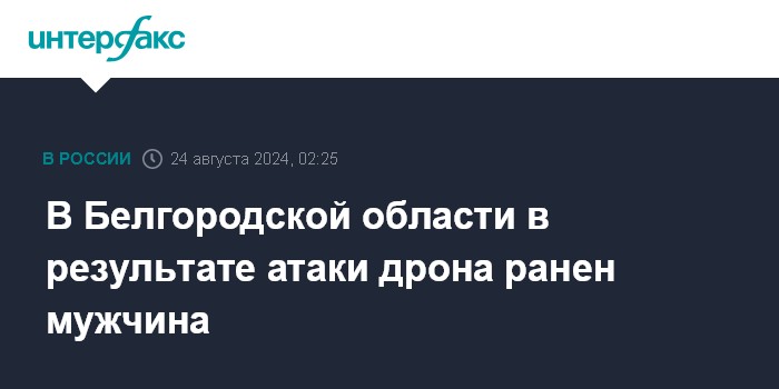 Москва. 24 августа. INTERFAX.RU - В результате атаки украинского дрона в поселке Малиновка Белгородской области получил ранения местный житель, сообщил в ночь на субботу губернатор Вячеслав Гладков.