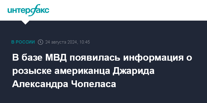 В базе МВД появилась информация о розыске американца Джарида Александра Чопеласа