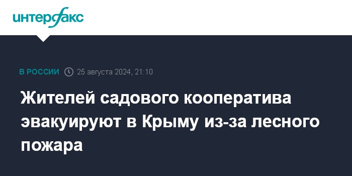 Москва. 25 августа. INTERFAX.RU - Пожар в горнолесной местности под Феодосией (Крым) привел к эвакуации ста человек из ближайшего садового товарищества, сообщил глава Крыма Сергей Аксенов.