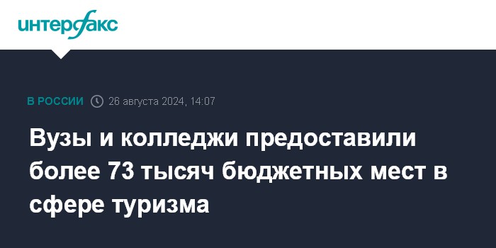 Москва. 26 августа. INTERFAX.RU - В вузах и колледжах для студентов по специальностям в сфере туризма и гостеприимства в 2024 году выделено более 73 тысяч бюджетных мест, сообщила пресс-служба вице-премьера Дмитрия Чернышенко.