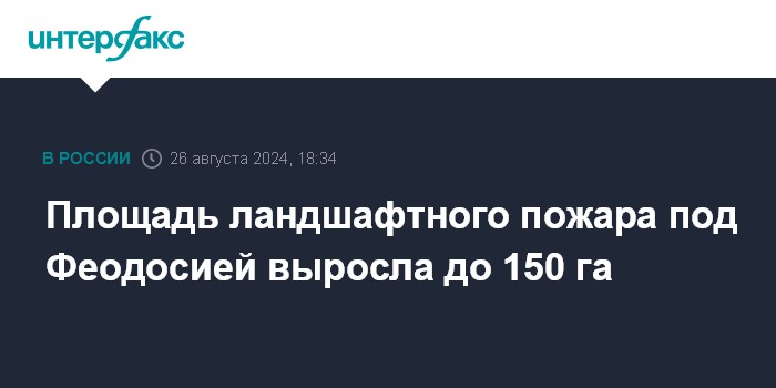 Москва. 26 августа. INTERFAX.RU - В городском округе Феодосия площадь ландшафтного пожара рядом с горой Тепе-Оба у поселка Орджоникидзе распространился уже на территории 150 га, сообщает МЧС России.