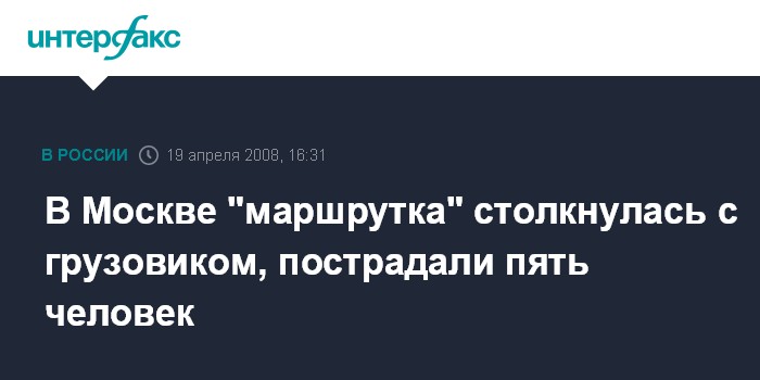 Москва. 19 апреля. ИНТЕРФАКС - МОСКВА - Пять человек получили травмы в результате столкновения пассажирской "Газели" со стоящим на обочине МКАД грузовиком в субботу в Москве.