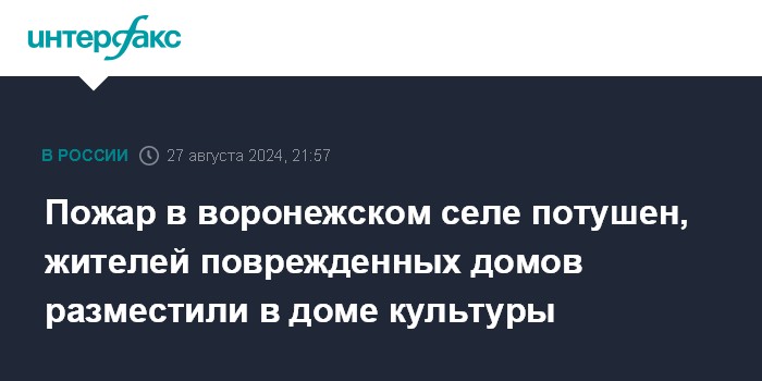Москва. 27 августа. INTERFAX.RU - Пожар в селе Журавка Богоучарского района потушен, сообщил губернатор Воронежской области Алексей Гусев.