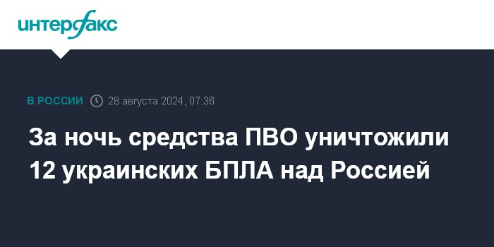 За ночь средства ПВО уничтожили 12 украинских БПЛА над Россией