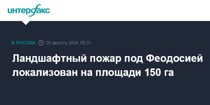 Москва. 28 августа. INTERFAX.RU - В городском округе Феодосия природный пожар в районе горы Тепе-Оба у поселка Орджоникидзе удалось локализовать в среду утром на площади 150 га, сообщили в управлении МЧС по Крыму.