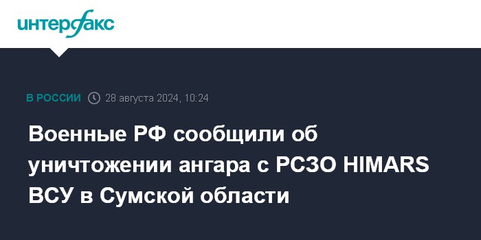 Военные РФ сообщили об уничтожении ангара с РСЗО HIMARS ВСУ в Сумской области