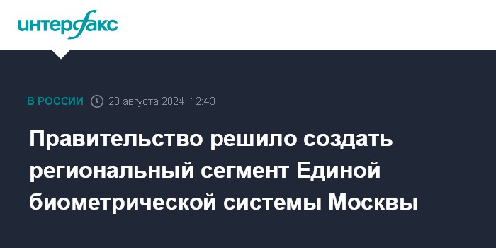 Москва. 28 августа. INTERFAX.RU - Правительство решило создать московский региональный сегмент государственной Единой биометрической системы (ЕБС) и утвердило перечень услуг, для которых он будет применяться. Соответствующее постановление подписал премье-министр Михаил Мишустин.