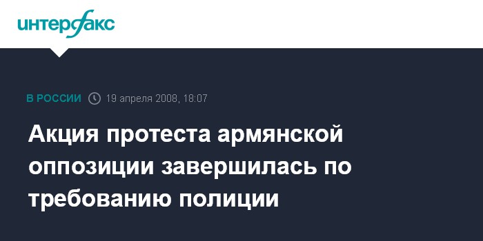 Ереван. 19 апреля. ИНТЕРФАКС - Акция оппозиции Армении, организованная общественной организацией "Женщины во имя мира" в Ереване, завершилась.