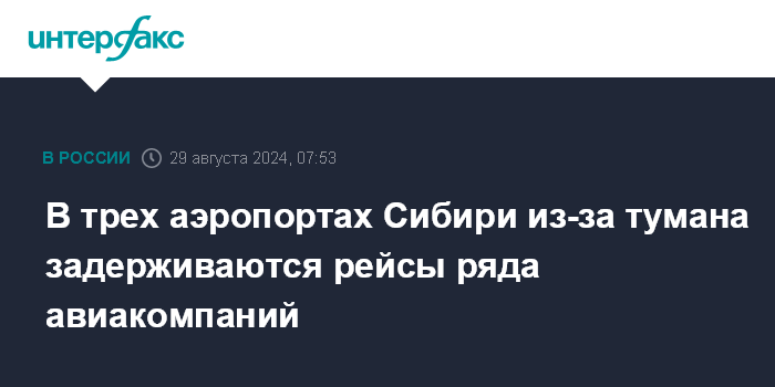 Москва. 29 августа. INTERFAX.RU - В аэропортах Новосибирска, Новокузнецка и Омска объявлены задержки рейсов ряда авиакомпаний в связи с туманом, сообщает пресс-служба Западно-Сибирской транспортной прокуратуры в четверг.
