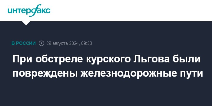 Москва. 29 августа. INTERFAX.RU - В Курской области был обстрелян Льгов, повреждены железнодорожные пути станции "Льгов Киевский", сообщил глава города Алексей Клемешов.