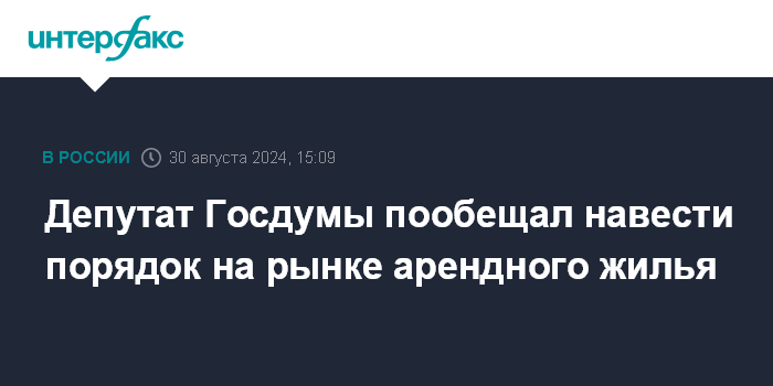 Москва. 30 августа. INTERFAX.RU - В России будут приняты решения по наведению порядка на рынке аренды жилого фонда, заявил в новом выпуске подкаста "Законный вопрос" глава комитета Госдумы по строительству и ЖКХ Сергей Пахомов.