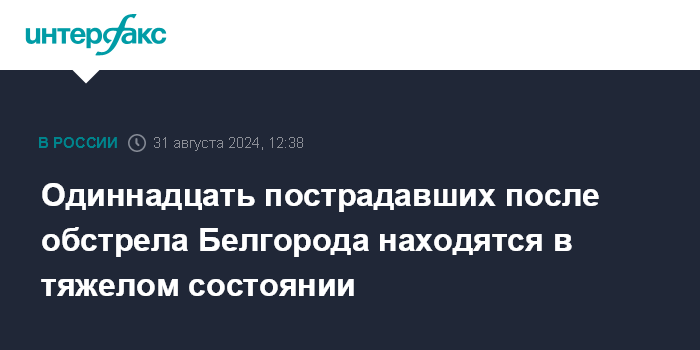 Одиннадцать пострадавших после обстрела Белгорода находятся в тяжелом состоянии