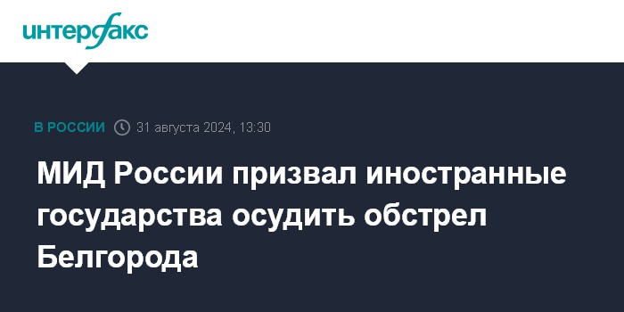 МИД России призвал иностранные государства осудить обстрел Белгорода