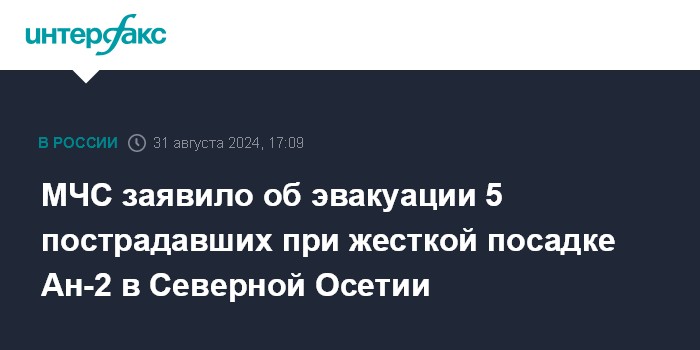МЧС заявило об эвакуации 5 пострадавших при жесткой посадке Ан-2 в Северной Осетии