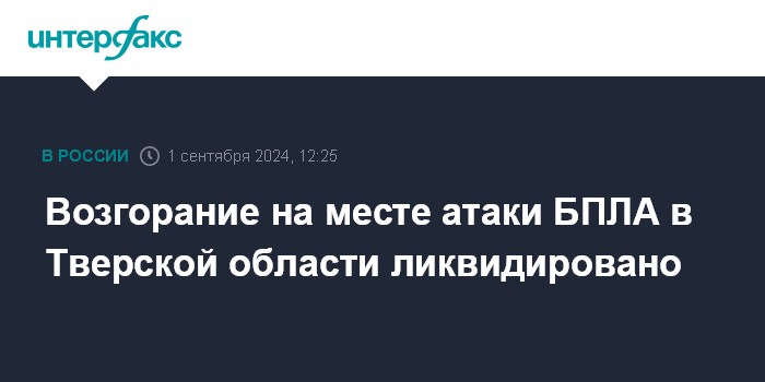 Москва. 1 сентября. INTERFAX.RU - Возгорание на месте атаки БПЛА в Конаковском округе Тверской области полностью ликвидировано, сообщила пресс-служба регионального правительства в воскресенье.