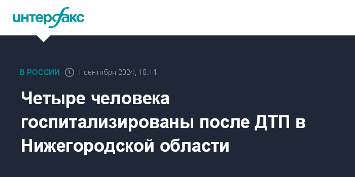 Москва. 1 сентября. INTERFAX.RU - Четыре человека госпитализированы после аварии на федеральной автодороге в Нижегородской области, в котором в воскресенье погибли и пострадали люди, сообщает Минздрав региона.