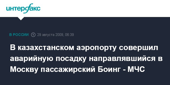 В казахстанском аэропорту совершил аварийную посадку направлявшийся в Москву пассажирский Боинг - МЧС