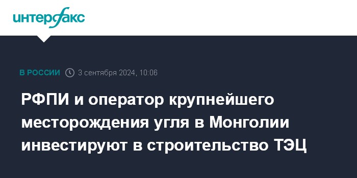 РФПИ и оператор крупнейшего месторождения угля в Монголии инвестируют в строительство ТЭЦ