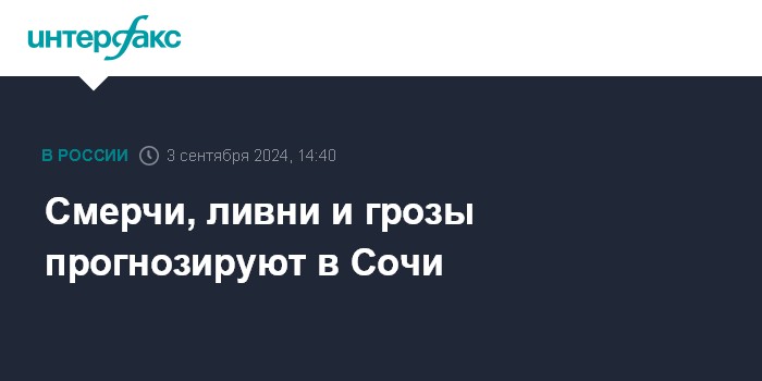 Москва. 3 сентября. INTERFAX.RU - Власти Сочи предупреждают о неблагоприятных погодных условиях с 4 по 6 сентября, сообщает пресс-служба администрации Сочи во вторник.