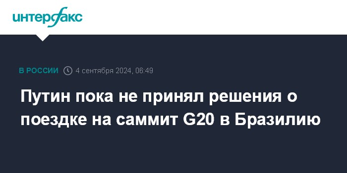 Путин пока не принял решения о поездке на саммит G20 в Бразилию