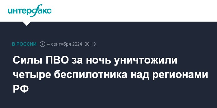 Силы ПВО за ночь уничтожили четыре беспилотника над регионами РФ