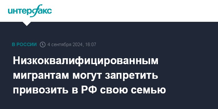 Низкоквалифицированным мигрантам могут запретить привозить в РФ свою семью
