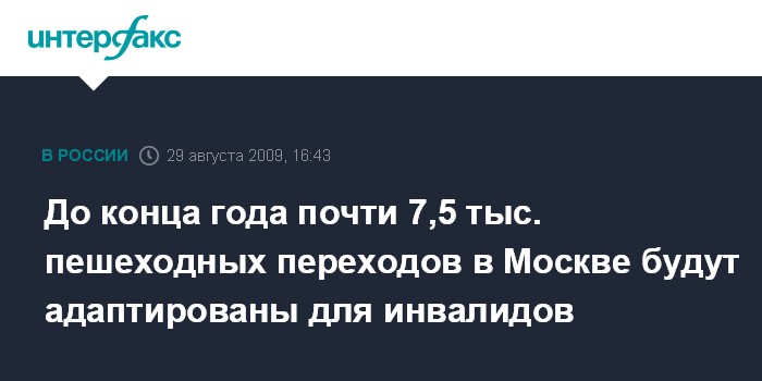 Он напомнил, что программа адаптации пешеходных переходов для маломобильных групп граждан рассчитана на пять лет. "Всего к 2012 году для нужд инвалидов и слабовидящих будут приспособлены (оборудованы специальными сходами) 27400 пешеходных переходов", - уточнил Титов.