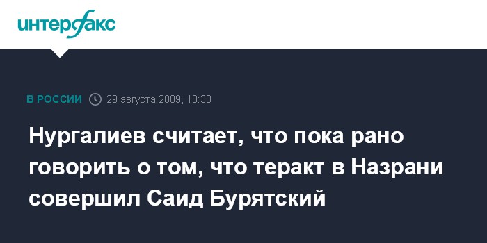 Нургалиев считает, что пока рано говорить о том, что теракт в Назрани совершил Саид Бурятский