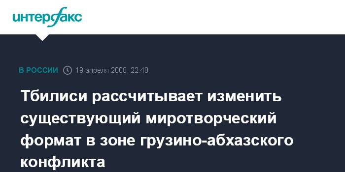 Тбилиси рассчитывает изменить существующий миротворческий формат в зоне грузино-абхазского конфликта