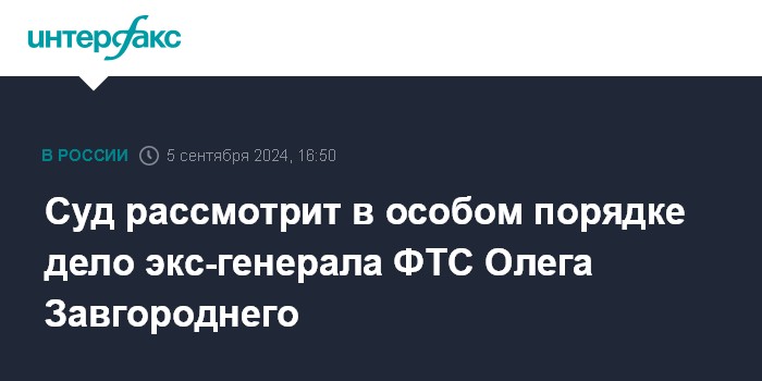 Москва. 5 сентября. INTERFAX.RU - Дело бывшего генерала ФТС России Олега Завгороднего, обвиняемого по делу о скандале в отеле Калининграда, будет рассмотрено в особом порядке судебного разбирательства, сообщила пресс-служба областного суда.