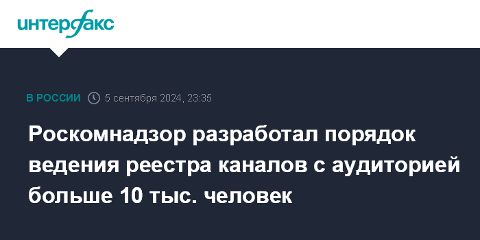 Согласно закону, владельцы каналов с аудиторией более 10 тыс. будут обязаны подать в Роскомнадзор сведения о себе в порядке и составе, установленном правительством.
