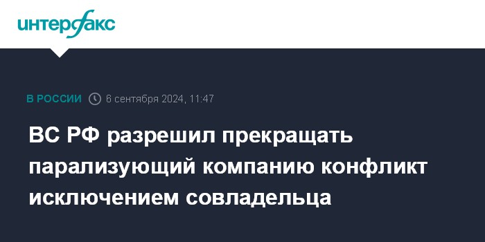 ВС РФ разрешил прекращать парализующий компанию конфликт исключением совладельца