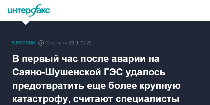 В первый час после аварии на Саяно-Шушенской ГЭС удалось предотвратить еще более крупную катастрофу, считают специалисты
