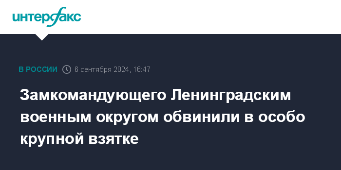 Замкомандующего Ленинградским военным округом обвинили в особо крупной взятке