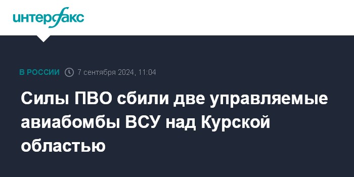 Силы ПВО сбили две управляемые авиабомбы ВСУ над Курской областью