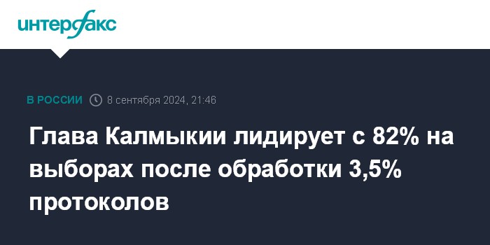 Глава Калмыкии лидирует с 82% на выборах после обработки 3,5% протоколов