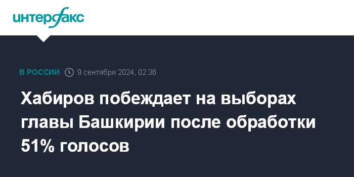 Хабиров побеждает на выборах главы Башкирии после обработки 51% голосов