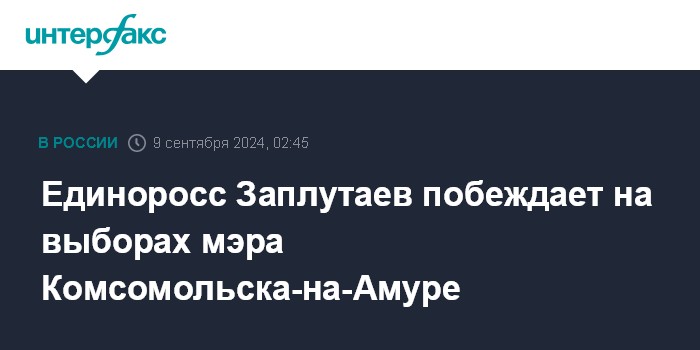 Единоросс Заплутаев побеждает на выборах мэра Комсомольска-на-Амуре