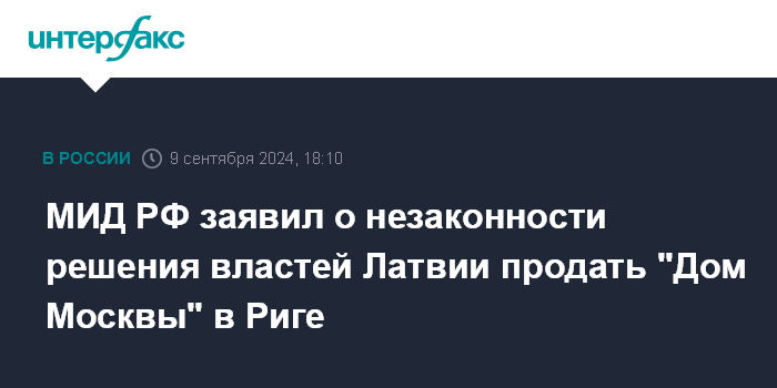 МИД РФ заявил о незаконности решения властей Латвии продать "Дом Москвы" в Риге