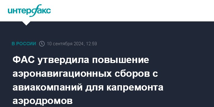 ФАС утвердила повышение аэронавигационных сборов с авиакомпаний для капремонта аэродромов