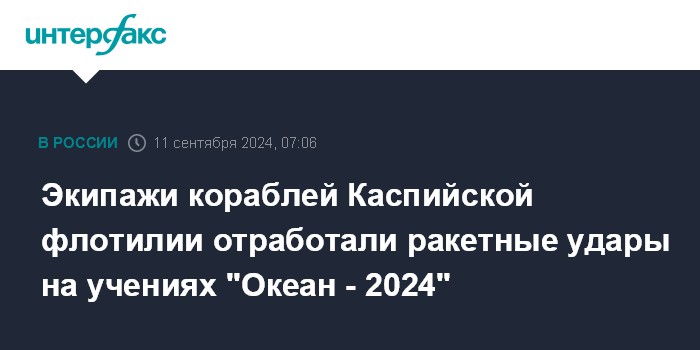 Экипажи кораблей Каспийской флотилии отработали ракетные удары на учениях "Океан - 2024"