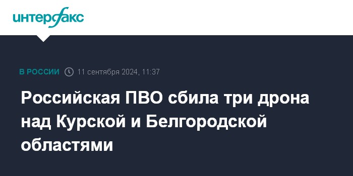 Российская ПВО сбила три дрона над Курской и Белгородской областями