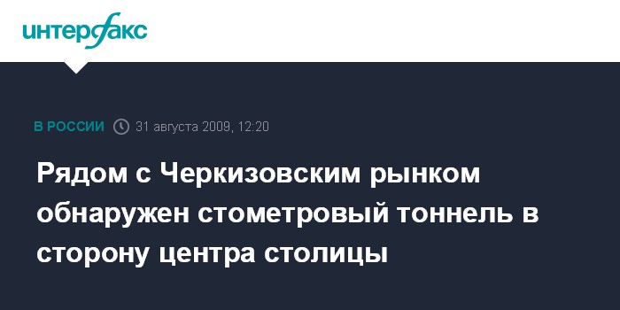 Москва. 31 августа. INTERFAX.RU – Недалеко от Черкизовского рынка военные отрыли стометровый тоннель в сторону центра Москвы, сообщил главный архитектор столицы Александр Кузьмин на пресс-конференции в центральном офисе "Интерфакса" в понедельник.