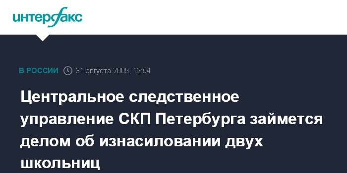 Москва. 31 августа. INTERFAX.RU – Дело о жестоком изнасиловании двух школьниц в Петербурге будут вести в центральном Следственном управлении СКП РФ по Северной столице.