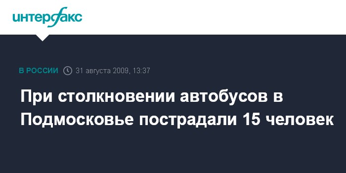 Москва. 31 августа. INTERFAX.RU - В ДТП с участием двух автобусов на Каширском шоссе в Подмосковье, по предварительным данным, пострадали 15 человек, сообщил "Интерфаксу" источник в правоохранительных органах.