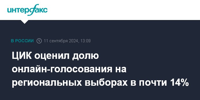ЦИК оценил долю онлайн-голосования на региональных выборах в почти 14%