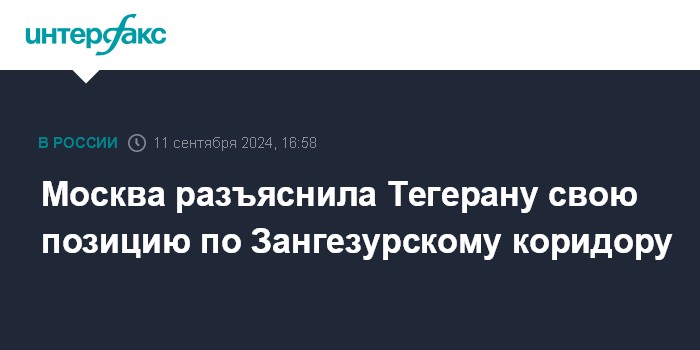 Москва разъяснила Тегерану свою позицию по Зангезурскому коридору