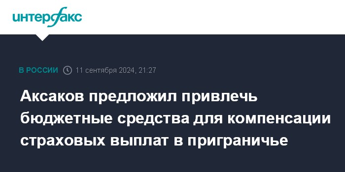Аксаков предложил привлечь бюджетные средства для компенсации страховых выплат в приграничье