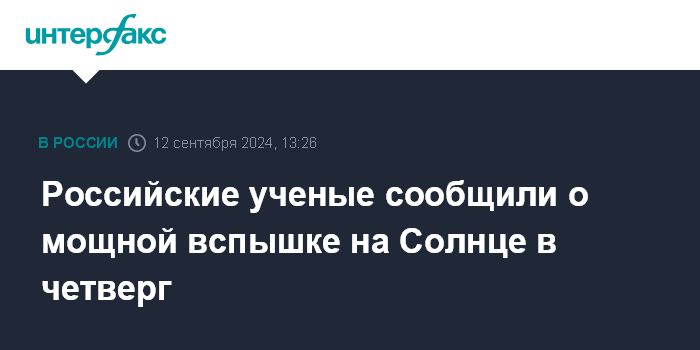 Москва. 12 сентября. INTERFAX.RU - Мощная вспышка класса Х и три сильные вспышки класса М зафиксированы на Солнце в четверг, сообщили в Институте прикладной геофизики имени Федорова.